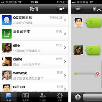 An early version of Weixin’s chat interface featuring voice messaging, allowing users to send audio notes by holding a button—ideal for quick communication in Chinese without typing.